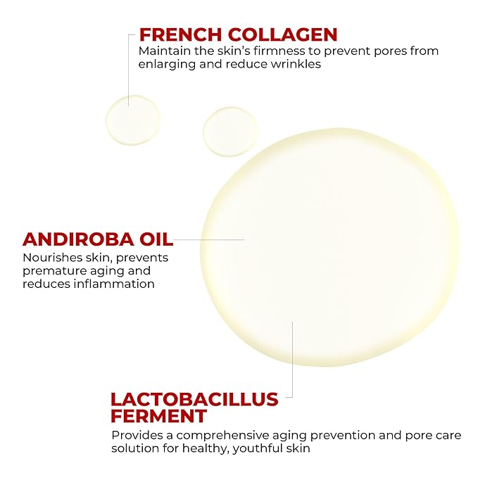 - AGING CARE: Contains collagen to maintain skin firmness, helping to cleanse pores, prevent pore enlargement, and reduce wrinkles.