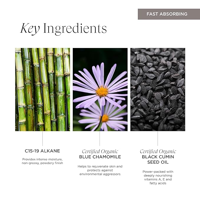 - Skin Brightening: Revitalizes skin's natural brightness and texture with blue tansy and black cumin seed oil