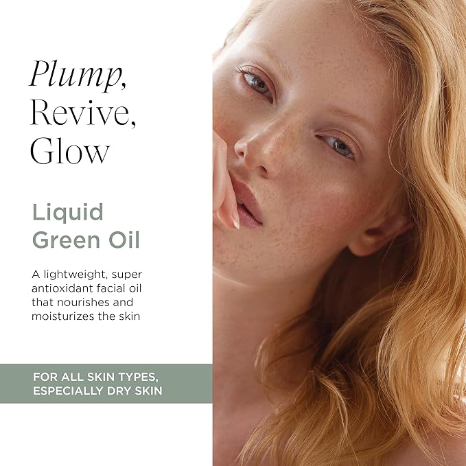 Intelligent Nutrients Liquid Green Oil, Organic Face Oil for Radiant Skin, Lightweight Hydrating Treatment, Vegan, 1 Oz