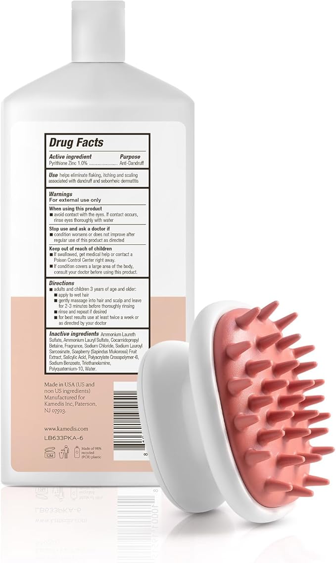 KAMEDIS Scalp Care Set: Clinically Proven Anti Dandruff Shampoo 16.9 Fl.Oz. & Scalp Massager Hair Brush. Gentle Scalp Scrubber Exfoliator and Dandruff Treatment, Suitable for Men & Women