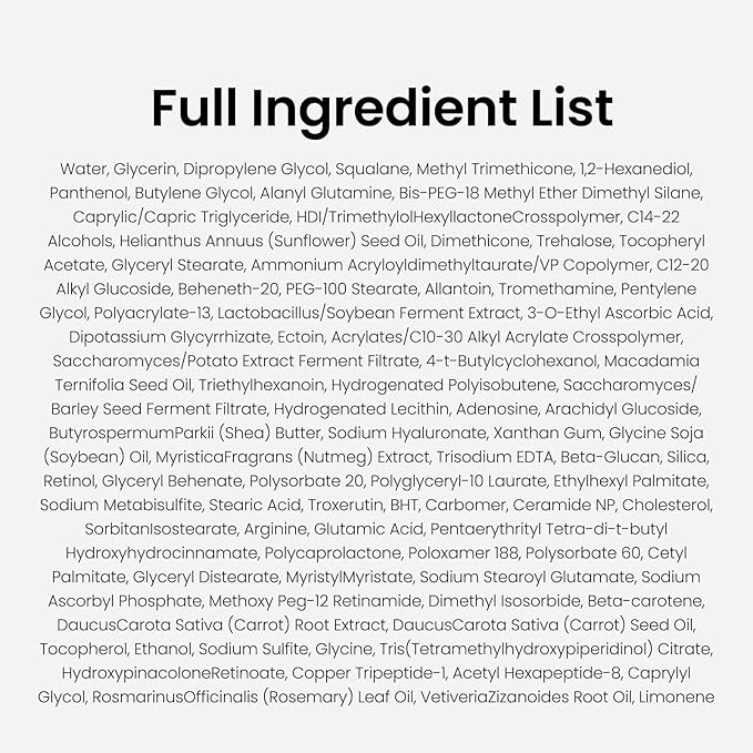 - RETINOL & PCL - Incorporates a unique 5X Retinol Complex and Polycaprolactone (PCL), both designed to significantly boost skin's elasticity. These ingredients work synergistically to reinforce skin's structural integrity, making it more resilient and youthful.