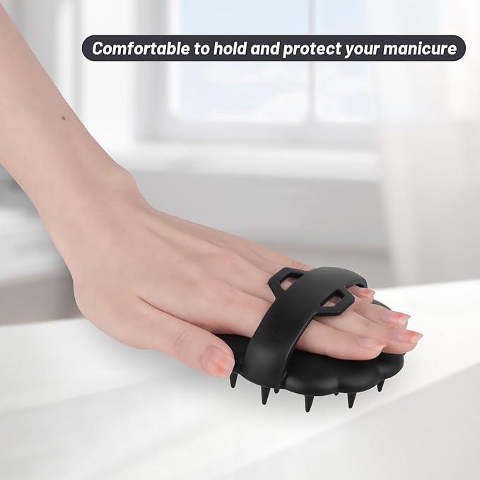 - PROTECT YOUR NAILS: the design of the handle band, you can put your fingers into the grip, grip more firmly, do not need to worry about slipping when massaging the scalp, to protect you to do a beautiful manicure!