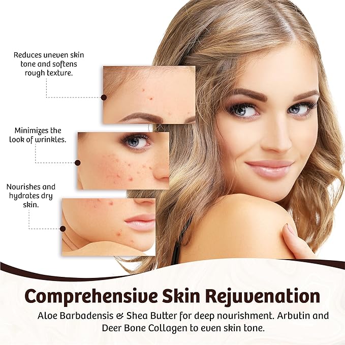 - For a Glowing & Even Skin Tone - Formulated with Arbutin and Deer Bone collagen, our Retinol facial moisturizer for face also helps radiate skin, manage hyperpigmentation, and even out skin tone.
