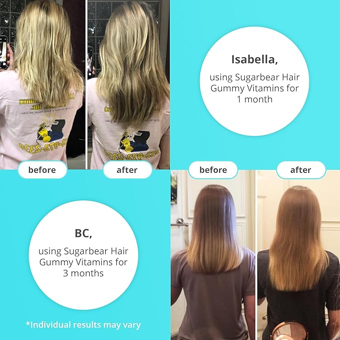 Sugarbear Hair Vitamin Gummy 1 Month Supply Extra Strength Biotin 6000mcg, Growth for Men & Women, Vegan Vitamin B12, MSM, Inositol, Omega 3, Elderberry, Certified Kosher, Halal, Cruelty-Free