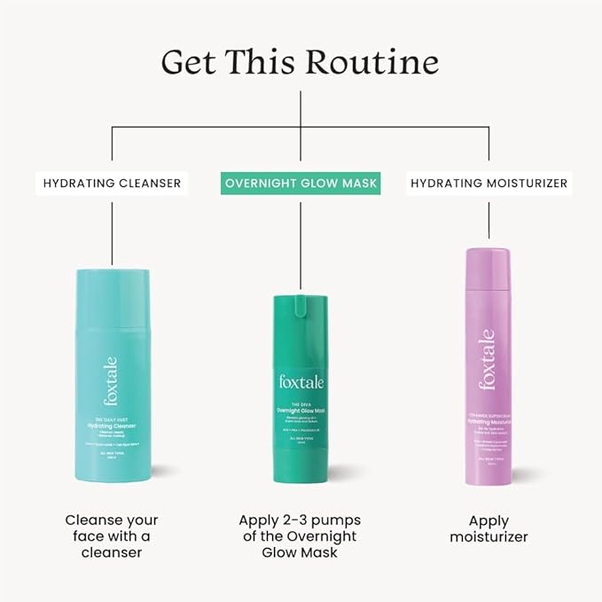 Foxtale The Diva Overnight Glow Mask, 4% Glycolic Acid, 3% Lactic Acid, 30 Second Salon like Brightening Facial for Clear, Smooth & Soft Skin, Men & Women - 1.05Oz