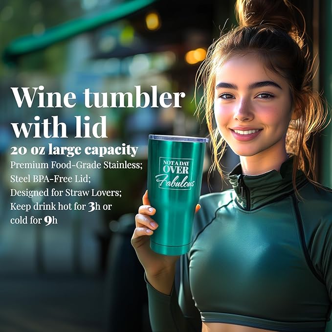 - Stainless Steel Tumbler with Straw:Tumbler with double-walled vacuum insulation, this sweat-free insulated tumbler with lid can preserve beverage temperature up to 24h for cold & 12h for hot, "Not A Day Over Fabulous", positive quote printing brings her smile & happy mood every day, express your love and care, making it an ideal birthday gifts for her relaxing gifts for women