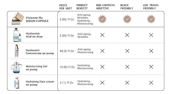 - TRAVEL-FRIENDLY CAPSULES: Compact and portable, these moisturizing serum capsules are ideal for on-the-go skincare. Enjoy hydrated, rejuvenated skin wherever you travel with VivienneHu’s convenient and travel-ready packaging.