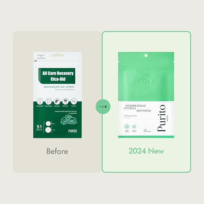 PURITO SEOUL Wonder Releaf Centella Spot Patch, Korean Centella, for Sensitive Skin, Soothing, Pimple Patches for Face, Spot Stickers, K-Beauty, 51 Count