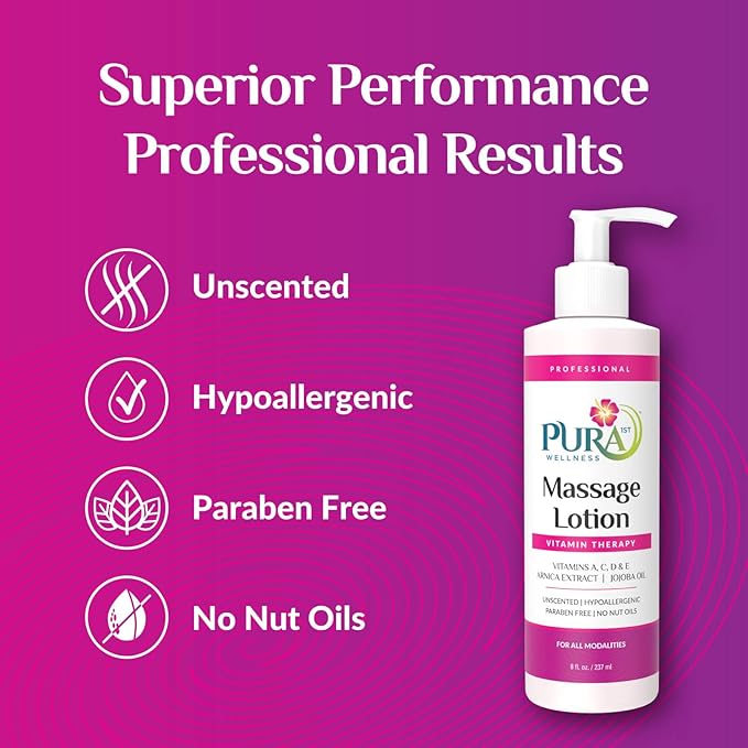 PURA Vitamin Therapy Massage Lotion, Massage Lotion Therapy Professional Deep Tissue Therapy, Pura Wellness Vitamin Therapy Lotion Unscented Lotion for Physical Therapy and Recovery, 8 oz