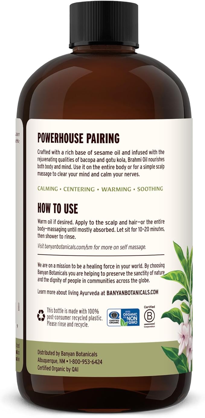 Banyan Botanicals Brahmi Oil with Sesame – Organic Ayurvedic Massage Oil with Gotu Kola and Bacopa – Calming Massage Oil for Focus & Relaxation – 24 oz – Non GMO Sustainably Sourced Abhyanga Oil