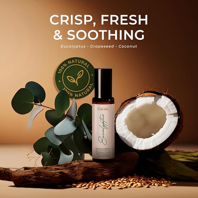 Gya Labs Eucalyptus Essential Oil Roll on for Soothing Comfort - 100% Pure Natural Eucalyptus Oil Roller for Skin, Relaxing Aromatherapy, Travel Size (0.34 Fl Oz)