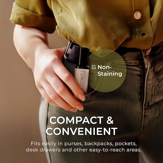 - Travel-sized convenience: Embrace the ease of travel with our compact-sized essential oils eucalyptus roll-on, making it convenient to apply wherever you go. Its travel-friendly design ensures hassle-free application for on-the-go relaxation.