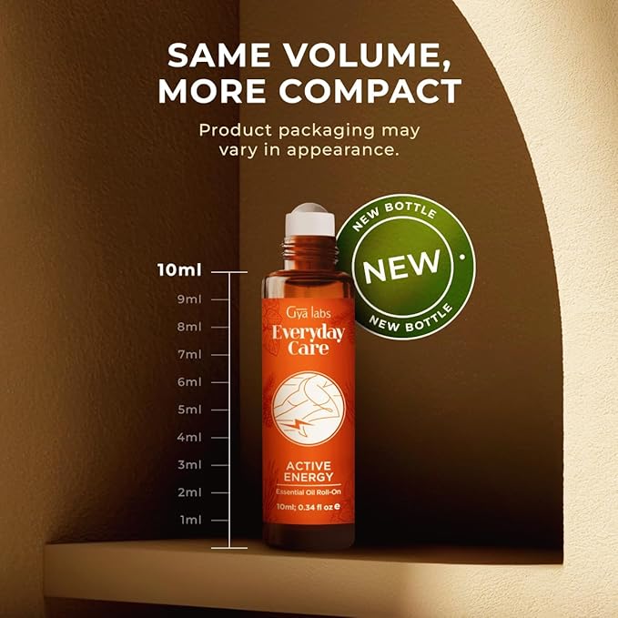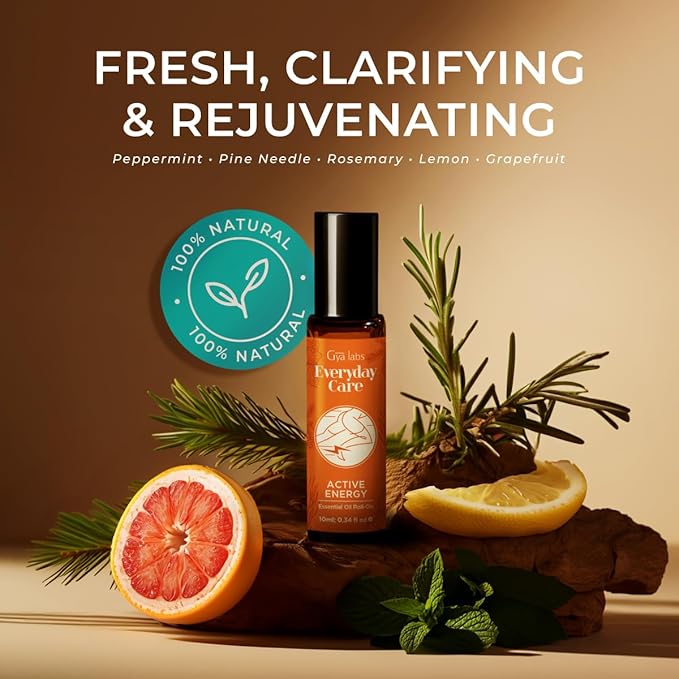 Gya Labs Active Energy Essential Oil Roll on - 100% Pure Natural, Blend with Energizing Lemon & Refreshing Peppermint Oil, Aromatherapy Roller, Travel Size (0.34 Fl Oz)