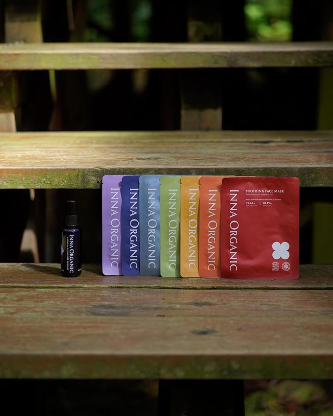 INNA ORGANIC Sheet Mask Set, Anti-Aging & Hydrating, EWG & COSMOS Certified (Pack of 5) | First Pick Discovery Set | Luxury Clean Beauty