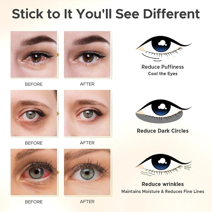 - Complete Solution for Puffiness & Dark Circles-With ingredients like Witch Hazel and Spirulina Extract, these eye patches are designed to reduce puffiness, dark circles, and bags. Use them in the morning to minimize under-eye swelling and at night to repair and refresh your eyes. This comprehensive mask helps improve wrinkles and fine lines, offering a rejuvenated appearance.