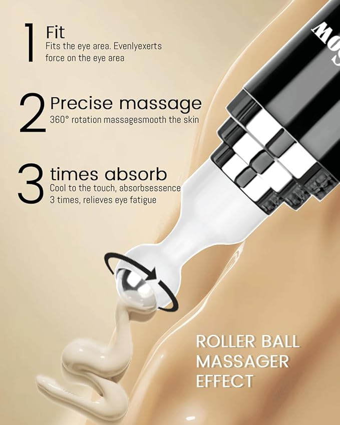• 360° Massage Ball Eye Roller Cream: Experience a soothing massage with every application of our eye roller cream. The 360° angle design perfectly contours to the delicate eye area, providing a gentle yet effective massage that stimulates blood circulation and helps to reduce puffiness and dark circles.