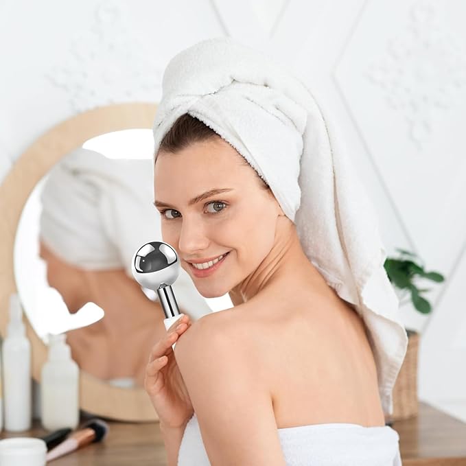 JURon Ice Globes Stainless Steel Beauty Facial Massager for Face & Eyes, Unbreakable Stainless Steel Cryo Sticks for Beauty Routines, Facials Cold Roller Cooling Globes (Ball, 1Pack), Silver