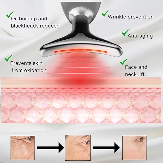 - (PREMIUM SKIN CARE DEVICE) This facial massager will heat up to 113 degrees Fahrenheit(45 degrees celsius), which allows the skin to absorb creams or lotions quicker and more effectively, so that your skin will shine and tighten.
