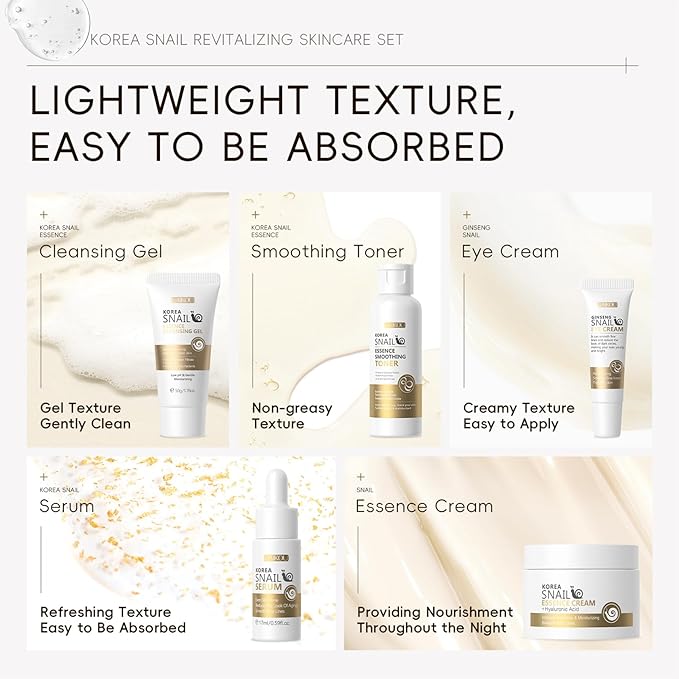 - [DAILY SKIN CARE KIT] - This snail facial skin care sets & kits is light-weight and snail moisturizing essence can be quickly absorbed by the skin, lightweight formula with soft texture, non-sticky. Skin care routine kit for women and girls to meet all your daily skincare need