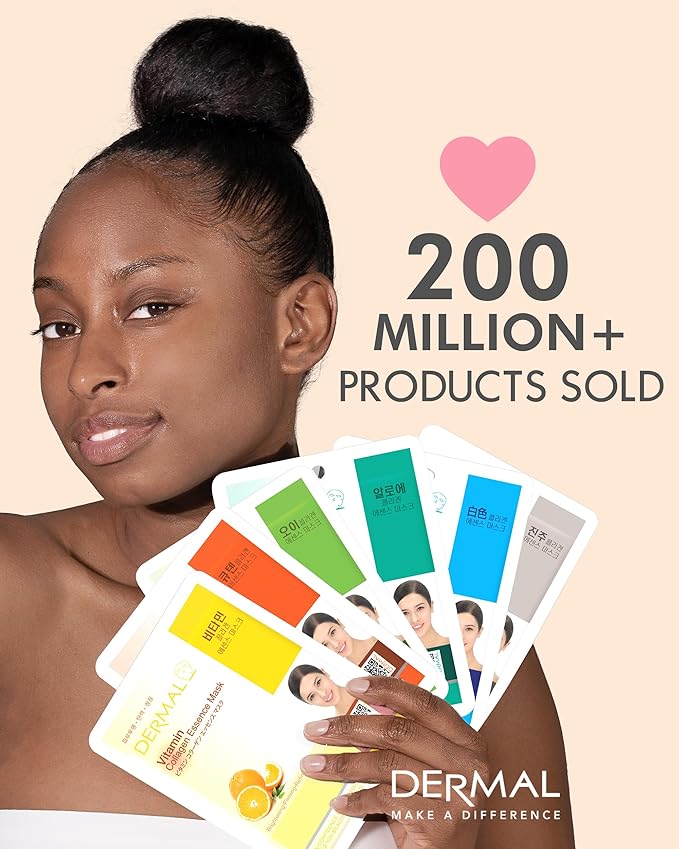 DERMAL Q10 Collagen Essence Facial Mask Sheet 23g Pack of 10 - Coenzyme Q10, Anti Wrinkle and Anti Aging, Skin Elasticity, Daily Skin Treatment Solution Sheet Mask