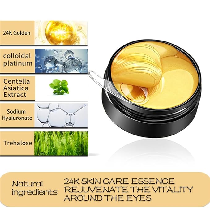 24k Gold Under Eye Patches - 60 Pcs Gold Eye Mask Anti-Aging, Under Eye Mask for Removing Dark Circles, Puffiness, Wrinkles.