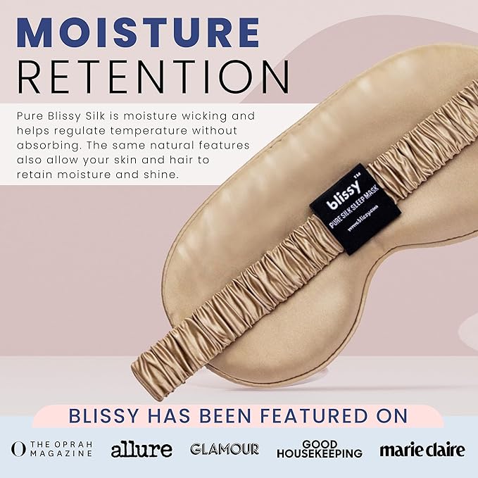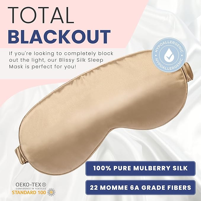 - TOTAL BLACKOUT - If you're looking to completely block out the light, our Blissy Silk Sleep Mask is perfect for you! Made with 100% pure Mulberry silk and 22 momme 6A grade fibers, this mask will keep the light out and help you get a good night's sleep.