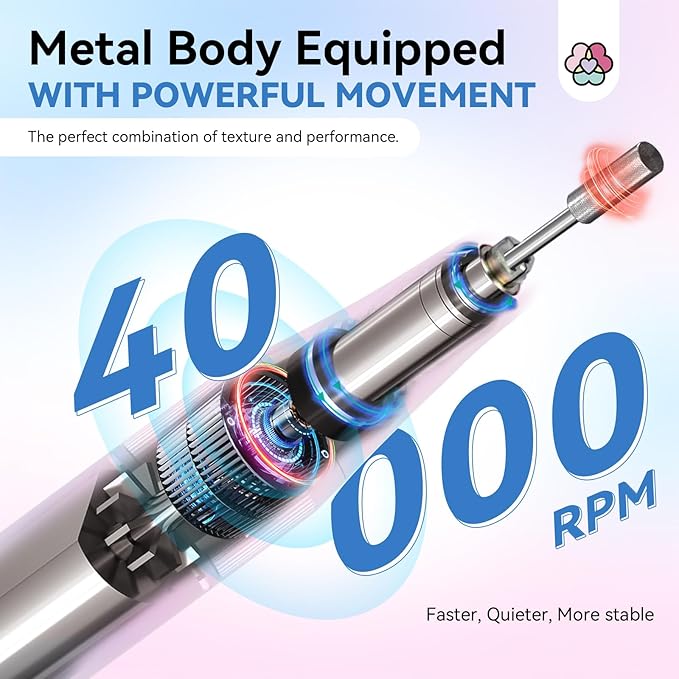 - Powerful Performance, Minimal Noise and Vibration: Experience exceptional performance with the Saviland Electric Nail Drill. It operates smoothly and quietly at a speed of 40,000 RPM, without generating excessive heat or disruptive noise or vibrations. Enjoy a precise and comfortable nail care experience every time.