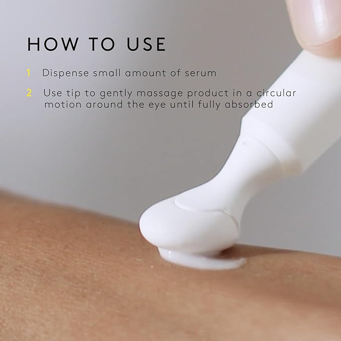 - HOW TO USE: Apply morning and night to cleansed skin. Dispense small amount of serum onto cooling ceramic tip. Use tip to gently massage product in a circular motion around the eye until fully absorbed.
