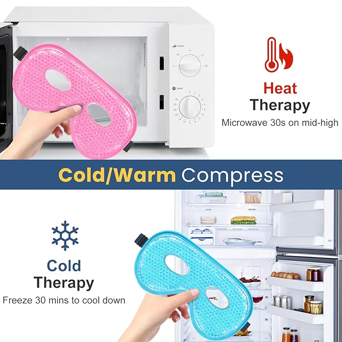 - 【Hot & Cold Therapy, Super Quick & Easy to Prepare】For cold use, just put ice frozen gel mask for puffy eyes into the reusable storage bag & freeze 30 mins to cool down. BeeVines 2 pack cooling eye masks for puffiness are ideal to be used for cold compress in the morning after wakeup. For dry eyes, you can also use it for warm compress: just microwave on Medium-high/High power for around 20s & add 5s each time & check if gel eye mask is warm enough for warm eye relief. Don't heat for over 1 min!
