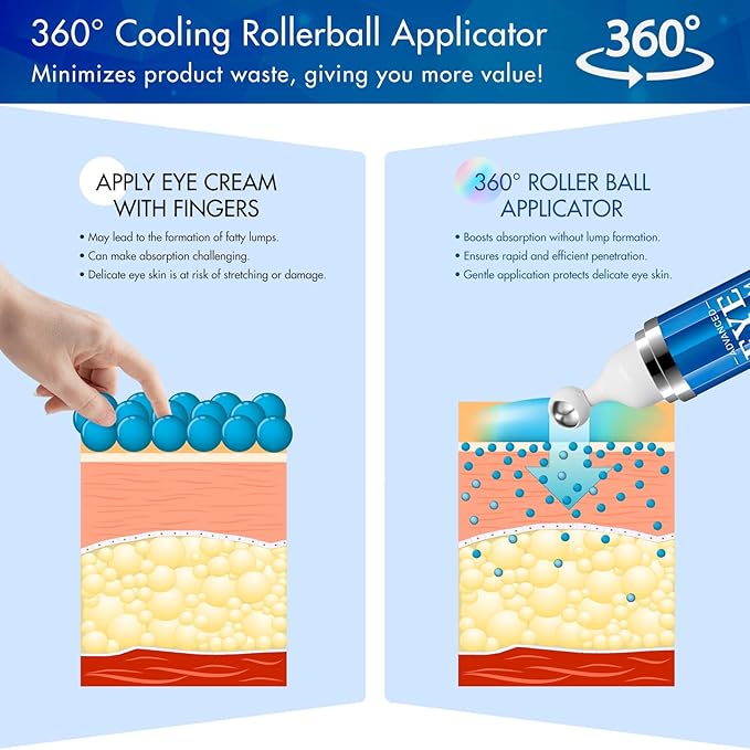 - ๐ธEASY TO USE - Gently press to dispense an appropriate amount of eye serum, apply evenly around the eye area with the roller ball, massaging in circular motions until fully absorbed. Use every morning and evening for best results.