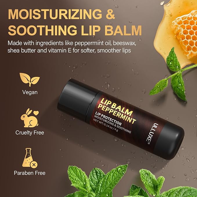 - 【Hydrating & Moisturizing Lip Balm】 The lip balm contains peppermint oil, beeswax, vitamin E, shea butter and jojoba oil. It helps reduces chapped lips, long-lasting hydrating, moisturizing, protects and soothes lips, reduce lip lines and flaky, making your lips smooth and soft.