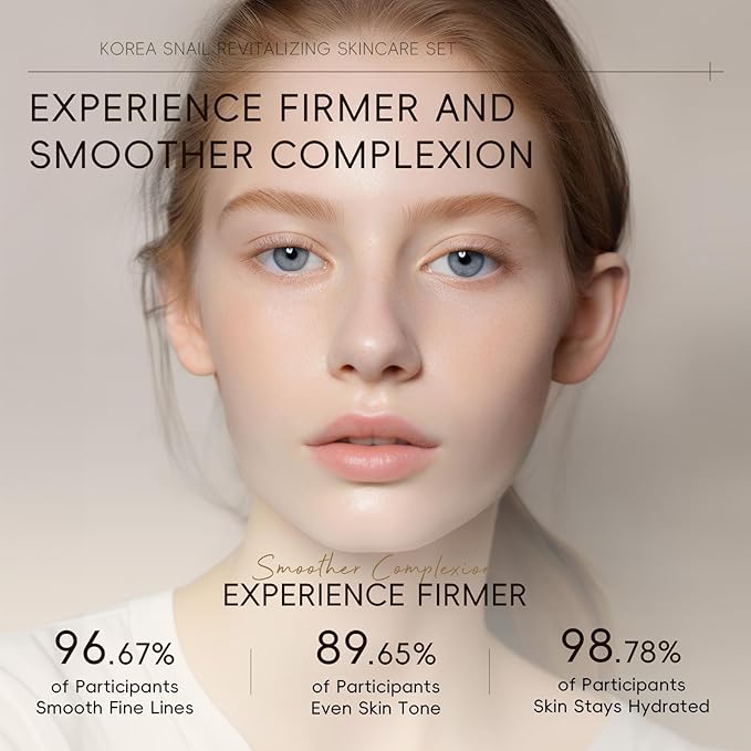 - 【Skin Care Set】——The Korean Snail Skincare suit contains a lot of snail secretion filtrate to help skin elasticity for a youthful and vibrant complexion. Our Beauty Gift Set can penetrate deep into the bottom layer of the skin, continuously replenish moisture to the skin, to achieve long-lasting moisturizing skin care effects,making the skin moist and soft