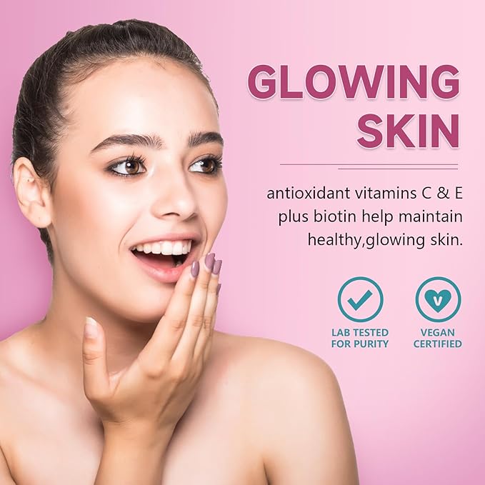 - KEY INGREDIENTS: Biotin 5000mcg (Vitamin B7) Promotes natural collagen production to improve women hair health, skin and nail health, and supply them with antioxidants for stronger hair and nails and glowing skin. Consuming our Biotin Gummies is a delicious way to fight aging and stay beautiful!