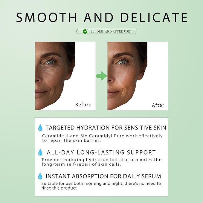 - ๐ง ALL-DAY LONG-LASTING SUPPORT - More effective than hyaluronic acid, this formula not only provides enduring hydration but also promotes the long-term self-repair of skin cells. Without the restorative power of ceramides, the skin cannot fully absorb essential nutrients and moisture.