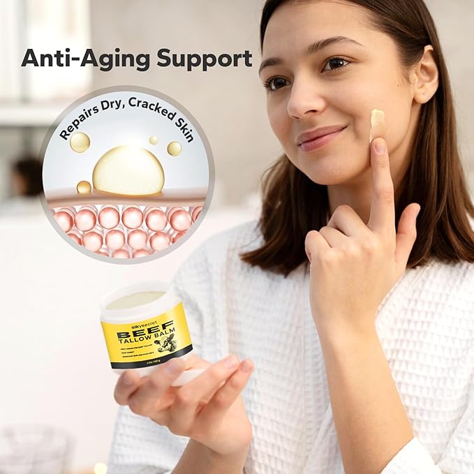 - Deep Skin Nourishment: Enriched with high-quality beef tallow, SilkySecret Beef Tallow Balm deeply nourishes and repairs dry, cracked skin. This balm is crafted to help restore moisture, balance natural oils, and rejuvenate skin for a smooth, radiant complexion. Perfect for face, body, elbows, and knees, it’s an all-in-one balm for total skin hydration.