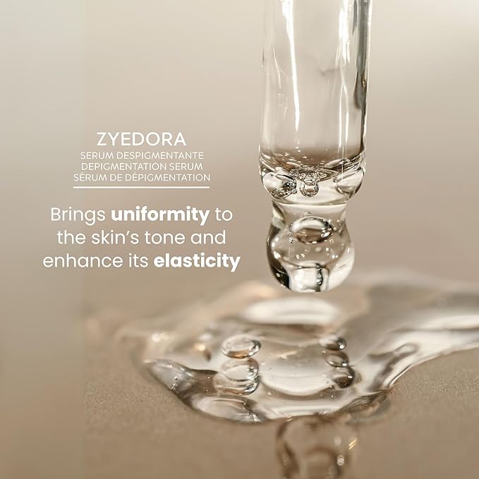 - ZYEDORA DEPIGMENTING SERUM: reduces dark spots & pigmentation. Targets uneven skin tone for a brighter, more uniform look