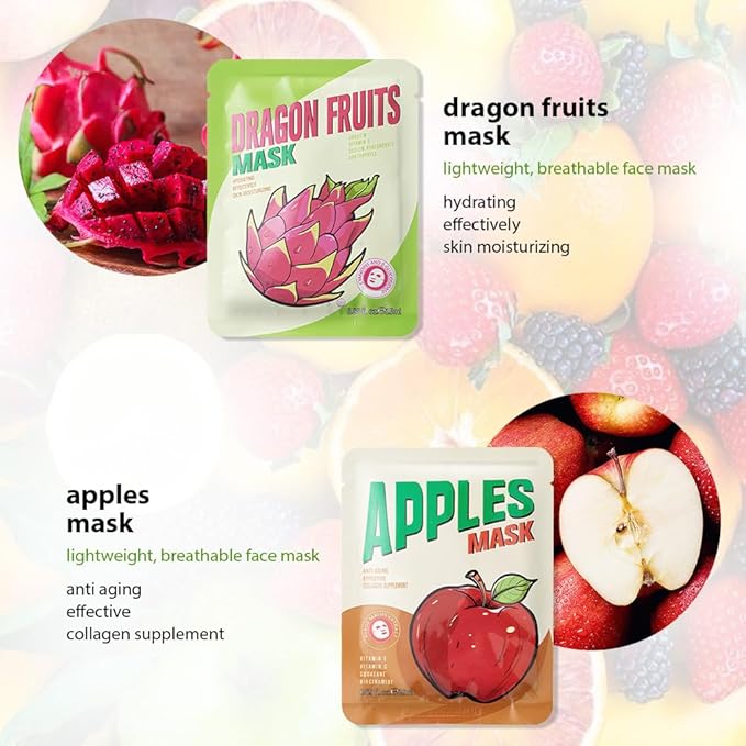 - DEEPLY MOISTURIZE:Mask skin care products contain natural ingredients such as fruit extracts to effectively moisturize and relieve dry skin.Deeply moisturize,nourish and revitalize the skin,making it soft,smooth and radiant