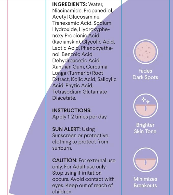 - Clinically Proven Actives for Maximum Effectiveness: This dark spot corrector combines potent Hydroxyphenoxy Propionic Acid with advanced actives like turmeric, kojic acid, tranexamic acid, and niacinamide. These ingredients work synergistically for skin brightening, reduce discoloration, and target stubborn dark spots for a visibly radiant complexion.