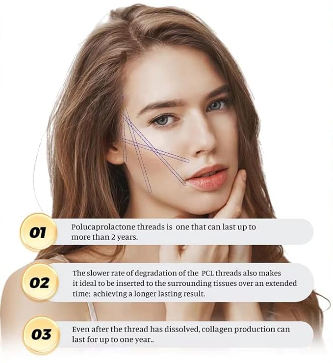 - "PCL Cog Threads" continuously produces collagen, promotes metabolism, renews aging skin, and supports the skin with a high-strength natural collagen scaffold that can resist skin aging and sagging, thereby filling up wrinkles and tissue breaks, tightening sagging skin, and restoring skin Smooth and delicate, achieve the purpose of lifting contour, firming skin, reducing wrinkles and improving skin texture