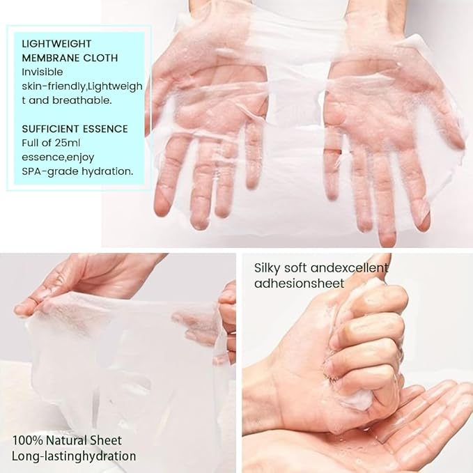 - FACIAL SKINCARE SHEET MASK:This premium women's skin care mask is silky smooth,moisturizing,refreshing and has increased efficacy and adhesion to block evaporation and lock in moisture for a hydrating effect that lasts all day