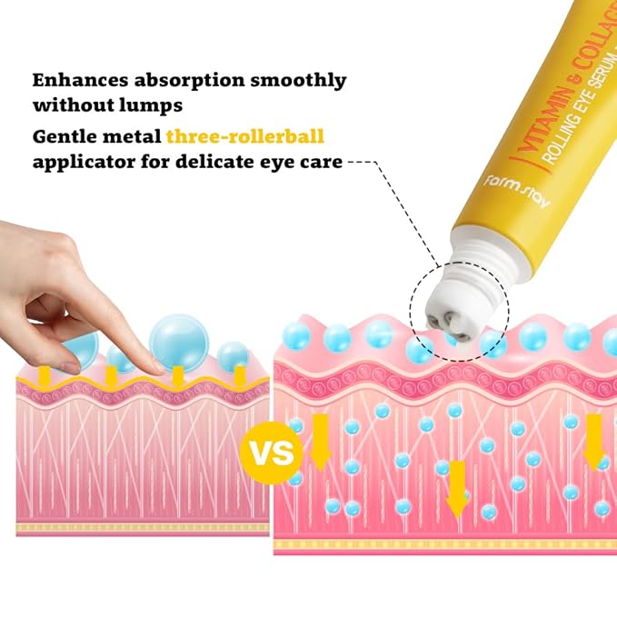 FARMSTAY Vitamin & Collagen Roll-on Eye Serum – Hydrating & Firming Eye Care, Reduces Puffiness, Dark Circles & Fine Lines – Easy-to-Apply Rollerball Design, 0.84 fl. oz.