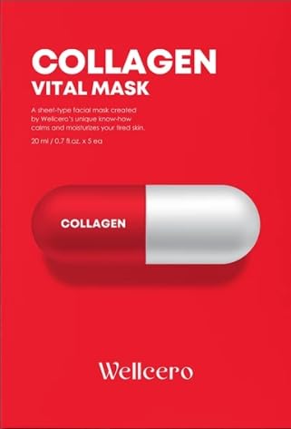 ELT Wellcero (1 Count 5pcs) Korean Face Masks, Brightening Mask, Vitamin C, Anti-Aging Wrinkle Fighting, Deep Collagen Mask, Korean Skin care (Collagen (1 count 5pcs))