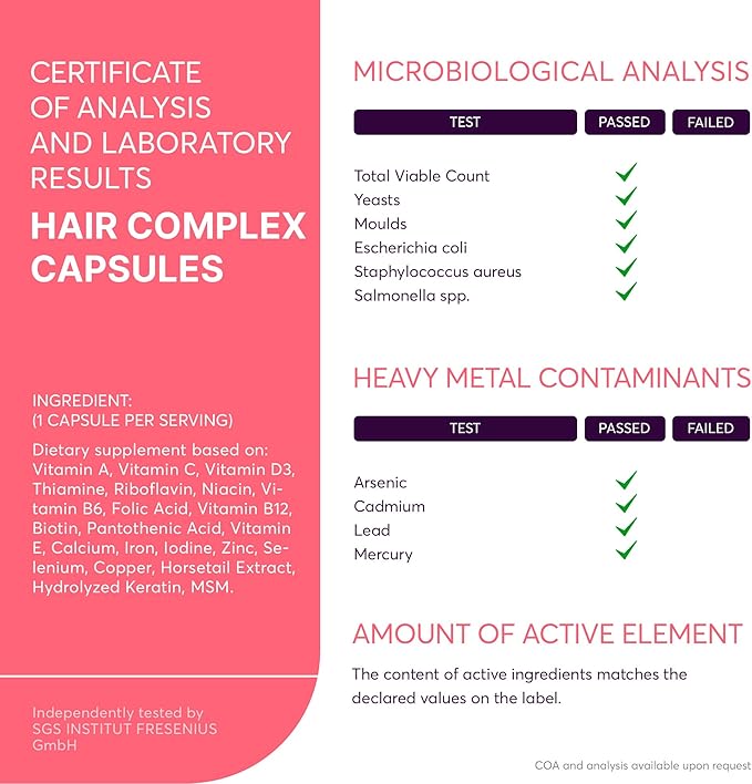 - π 21 ESSENTIAL INGREDIENTS FOR DAILY HAIR CARE β This hair vitamin supplement contains 21 carefully selected nutrients, including Biotin, Keratin, and MSM, along with essential Vitamins C, E, and Zinc, to help support your hair, skin, and nail care routine.