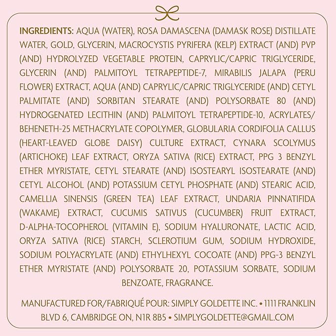 - Special Ingredients : Antioxidants, Gold, Hyaluronic Acid