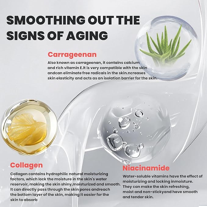 - Shrink pores and tighten skin: Ultra-low molecular collagen can maximize absorption and penetration. It helps minimize the appearance of pores, instantly increases skin elasticity, and visibly reduces the appearance of fine lines and wrinkles.