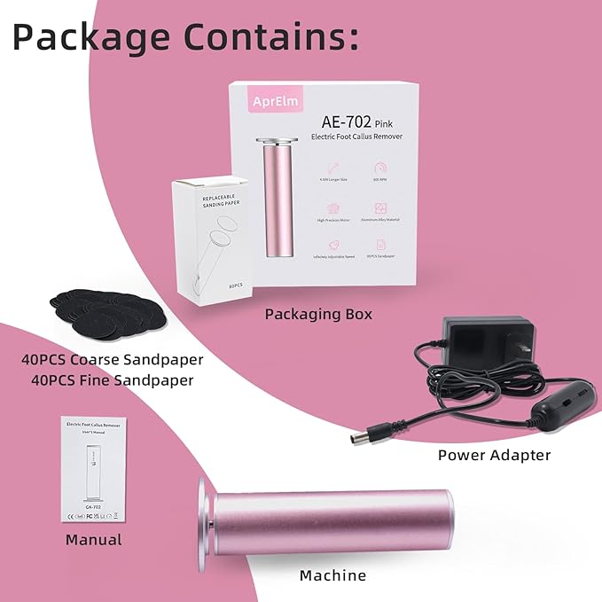 - 80 PCS Replacement Sandpapers: Includes 40 pieces of fine sandpaper and 40 pieces of coarse sandpaper, offering versatility for different foot care needs