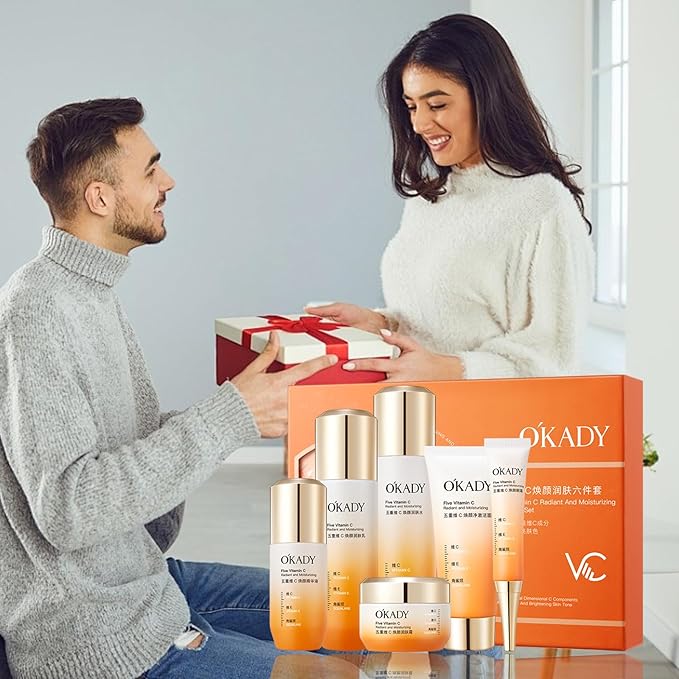 - 【O'KADY Skincare Set】 Presented in a sleek reusable box containing complete skincare essentials: 100g Gentle Cleanser, 120ml Hydrating Toner, 40ml Antioxidant Essence, 100ml Moisturizing Cream, 15ml Eye Gel and 50ml Night Cream. Thoughtfully curated for gifting or personal use,skincare set for women.