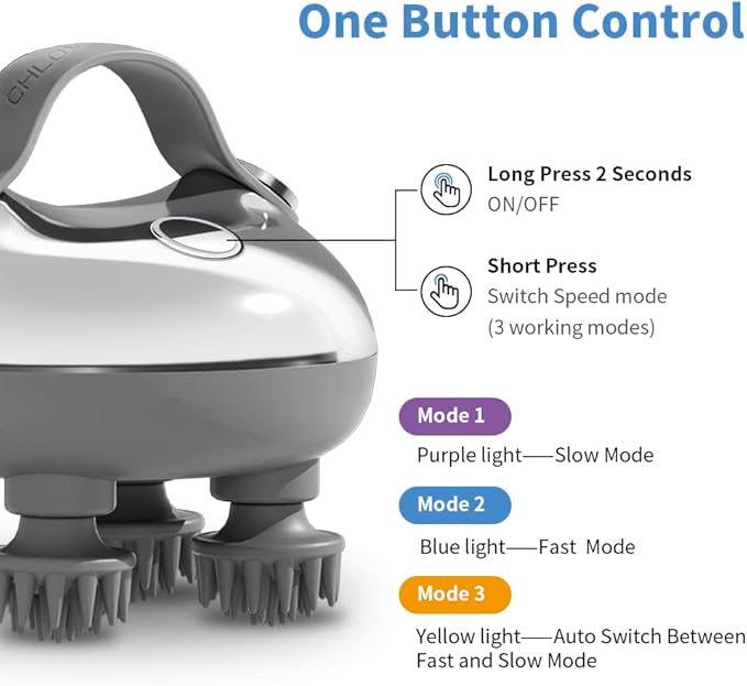 - 【One Button & 3 Speed Modes】The Smart Scalp Massager is designed to be easy to use, with all functions available at the touch of a button. You can switch between 3 working modes to suit different intensities, from gentle to deep kneading massage.