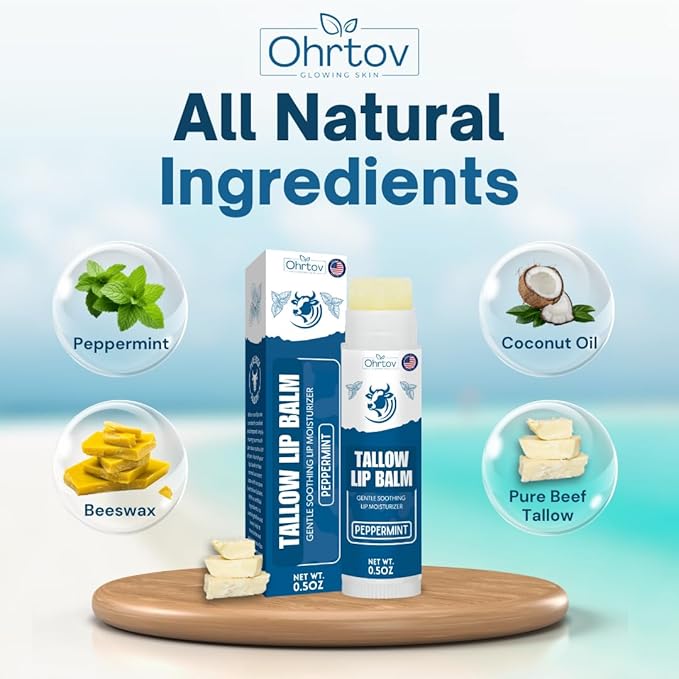 - INTENSELY HYDRATING FORMULA: Immerse your lips in moisture with our grass-fed organic beef tallow lip balm with peppermint flavor. Crafted with natural fats, akin to those in human skin, it maintains your lips' moisture barrier for enduring hydration and velvety softness.
