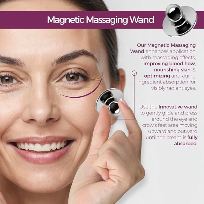 - MAGNETIC APPLICATOR: Our innovative magnetic wand not only enhances the application process but also elevates your skincare experience with its massaging effects. It encourages better blood flow, nourishes skin cells, and enhances your skin’s natural radiance. Additionally, it facilitates a more efficient delivery of anti-aging ingredients.